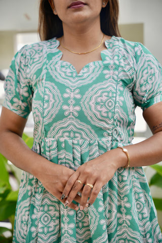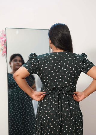 GREEN TINY LEAF | NON-FEEDING MAXI –PUFF SLEEVES | FULL LENGTH MAXI