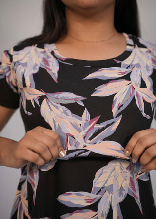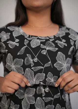 BLACK WHITE FLORA | ZIPLESS FEEDING PANT SET