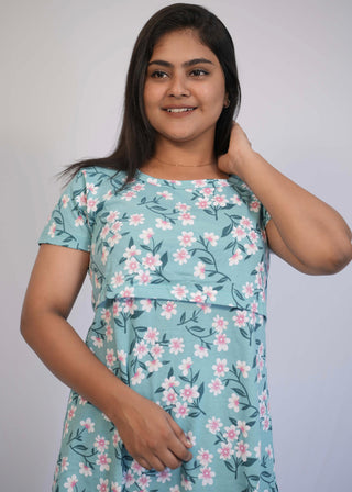 SEA GREEN FLORA | ZIPLESS FEEDING PANT SET