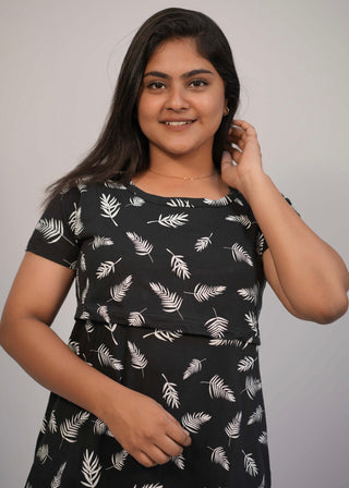 BLACK WHITE LEAF | ZIPLESS FEEDING PANT SET