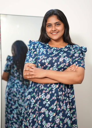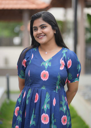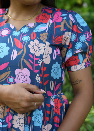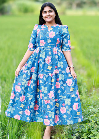 BLUE MULTI FLORA | NON-FEEDING MAXI –PUFF SLEEVES | FULL LENGTH MAXI