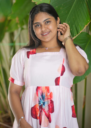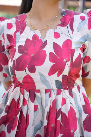 BLACK PINK FLORAL | NON-FEEDING MAXI – PUFF SLEEVES | FULL LENGTH MAXI