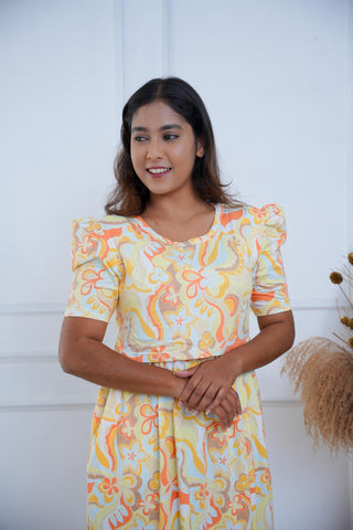 MUSTARD BLOOM | ZIPLESS MATERNITY MAXI-PUFF SLEEVES | FULL LENGTH MAXI