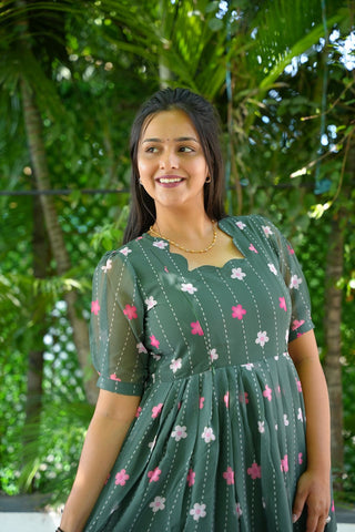 BOTTLE GREEN DAISY | MATERNITY GEORGETTE MAXI FULL LENGTH