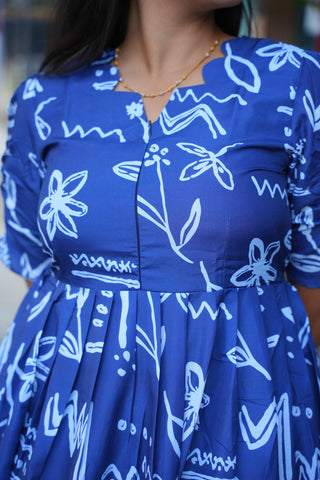 GEOMETRIC BLUE | ZIPLESS MATERNITY MAXI-PUFF SLEEVES | FULL LENGTH MAXI