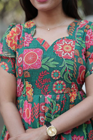 GREEN FLORAL BLOOM | ZIPLESS MATERNITY MAXI-PUFF SLEEVES | FULL LENGTH MAXI