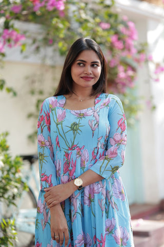 SKYBLUE MIRAGE | NON-FEEDING MAXI – PUFF SLEEVES | FULL LENGTH MAXI