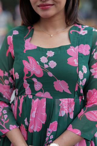 GREEN PINK FLORA | MATERNITY GEORGETTE MAXI ANKLE LENGTH
