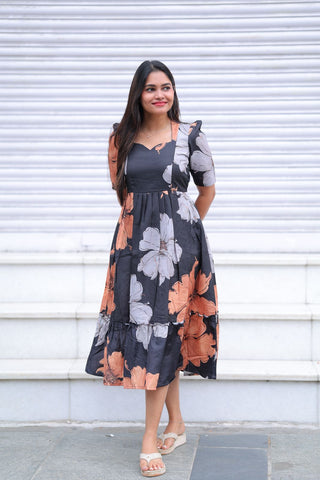 BLACK FLOWERS | NON-FEEDING MAXI – PUFF SLEEVES | FULL LENGTH MAXI