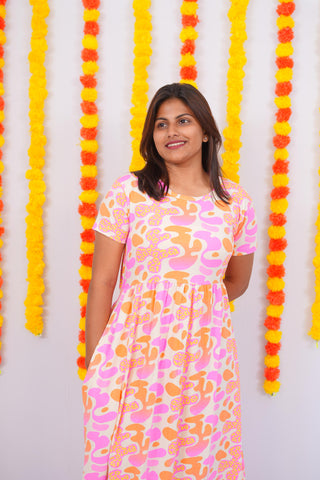 ORANGE PINK ABSTRACT | NON-FEEDING MAXI – SHORT SLEEVES | FULL LENGTH MAXI