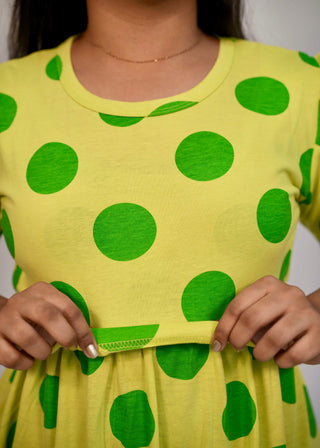 GREEN POLKA DOTS | ZIPLESS MATERNITY MAXI-PUFF SLEEVES | FULL LENGTH MAXI