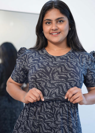 BLACK PEBBLES| ZIPLESS MATERNITY MAXI-PUFF SLEEVES | ANKLE LENGTH MAXI