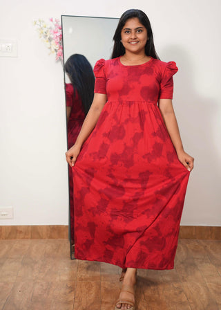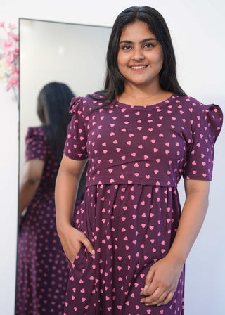 MAROON HEART | NON-FEEDING MAXI – PUFF SLEEVES | FULL LENGTH MAXI