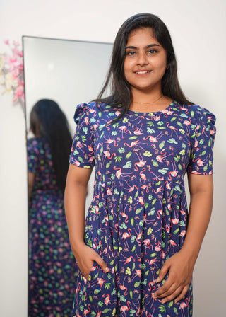 BLUE FLAMINGO | NON-FEEDING MAXI – PUFF SLEEVES | FULL LENGTH MAXI
