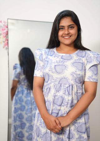 MISTY BLUE HEART | NON-FEEDING MAXI – PUFF SLEEVES | FULL LENGTH MAXI
