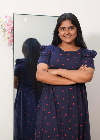BLUE RED HEART | NON-FEEDING MAXI – PUFF SLEEVES | FULL LENGTH MAXI