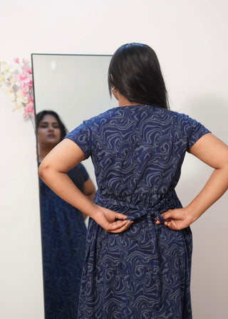 NAVY WAVES | NON-FEEDING MAXI – SHORT SLEEVES | FULL LENGTH MAXI