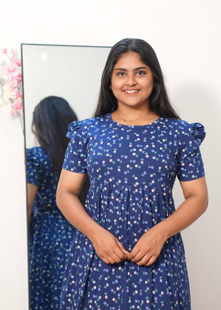 BLUE TINY FLORAL | NON-FEEDING MAXI – PUFF SLEEVES | FULL LENGTH MAXI