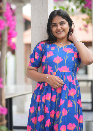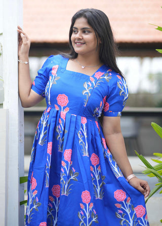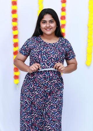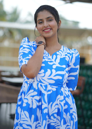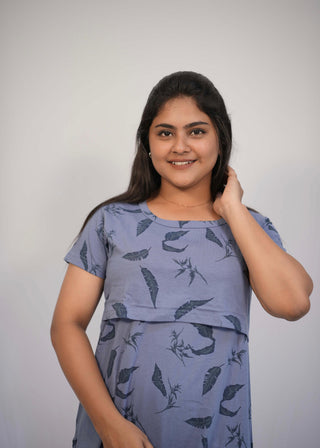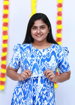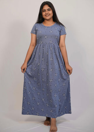 BLUE KOLLAM | NON-FEEDING MAXI – SHORT SLEEVES | ANKLE LENGTH MAXI