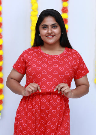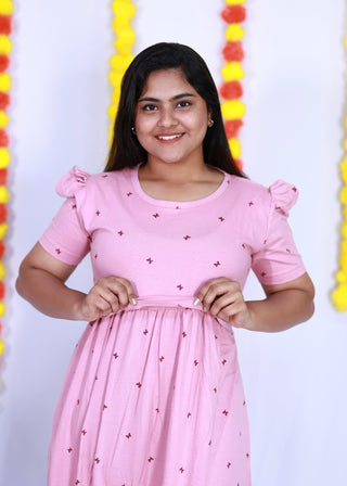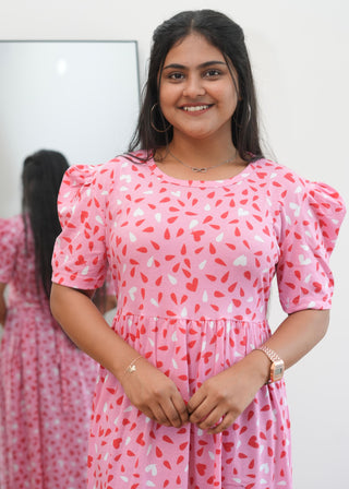 PINK HEARTS | NON-FEEDING MAXI – PUFF SLEEVES | ANKLE LENGTH MAXI