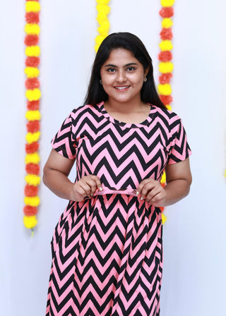 PINK BLACK ABSTRACT | ZIPLESS MATERNITY MAXI-SHORT SLEEVES | ANKLE LENGTH MAXI