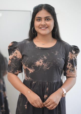 BLACK BROWN TIE & DYE | NON-FEEDING MAXI – PUFF SLEEVES | ANKLE LENGTH MAXI