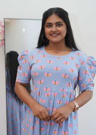 BLUE BUTTERFLY | NON-FEEDING MAXI – PUFF SLEEVES | ANKLE LENGTH MAXI