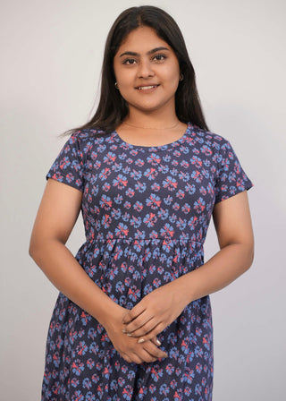 BLUE RED TINY FLORAL | NON-FEEDING MAXI – SHORT SLEEVES | ANKLE LENGTH MAXI