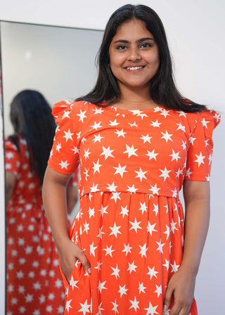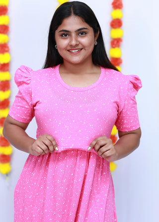 PINK STARS (THIN) | ZIPLESS MATERNITY MAXI-PUFF SLEEVES | FULL LENGTH MAXI