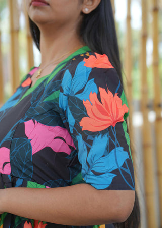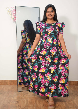 BLACK PINK FLORAL | NON-FEEDING MAXI – PUFF SLEEVES | FULL LENGTH MAXI