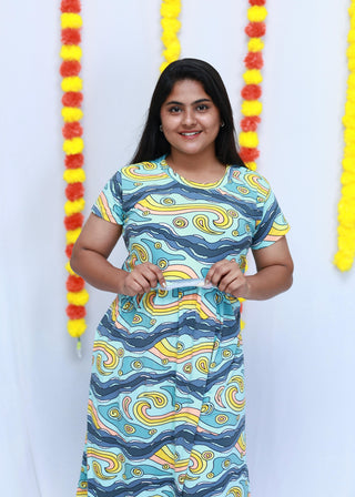 OCEAN WAVES | ZIPLESS MATERNITY MAXI-SHORT SLEEVES | ANKLE LENGTH MAXI