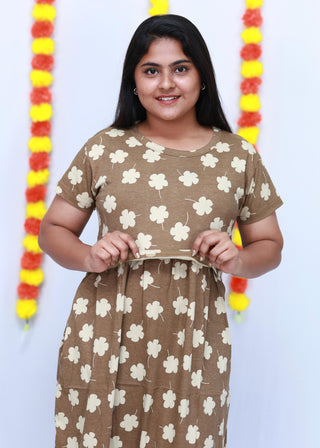 BROWNISH TRELIS | NON-FEEDING MAXI – PUFF SLEEVES | ANKLE LENGTH MAXI
