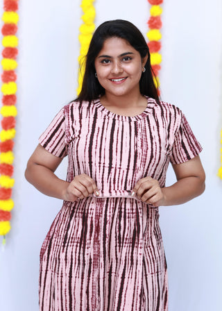 PINK WAVES | NON-FEEDING MAXI – PUFF SLEEVES | ANKLE LENGTH MAXI