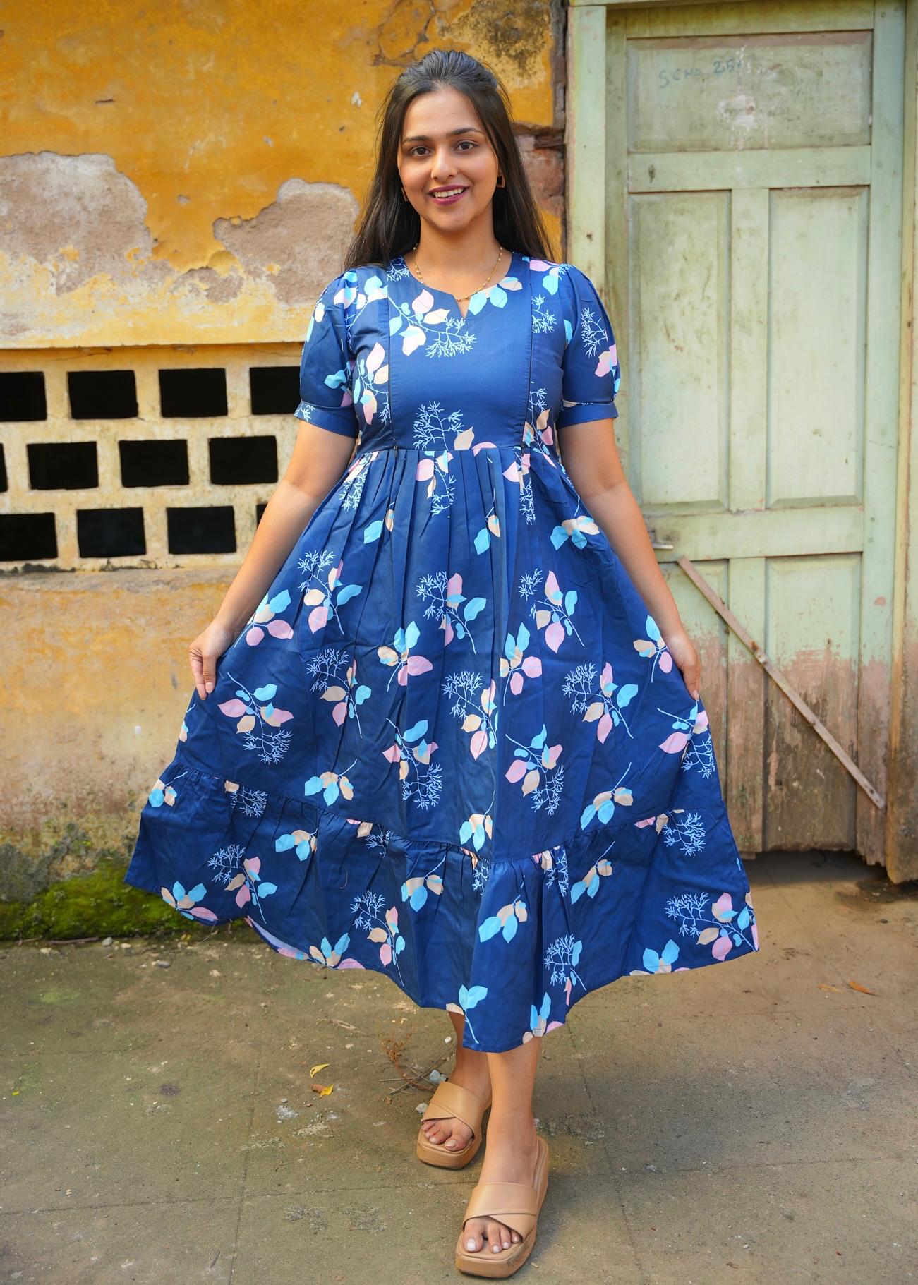 DEEP BLUE FLORA | MATERNITY MAXI ANKLE LENGTH