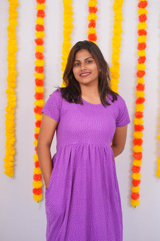 PURPLE DOTS | NON-FEEDING MAXI – SHORT SLEEVES | ANKLE LENGTH MAXI