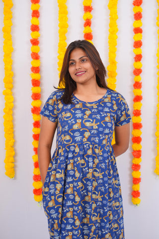 BLUE YELLOW BRINJAL| MATERNITY COTTON MAXI ANKLE LENGTH