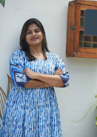 NAVY WHITE LEAF | NON-FEEDING MAXI – PUFF SLEEVES | ANKLE LENGTH MAXI