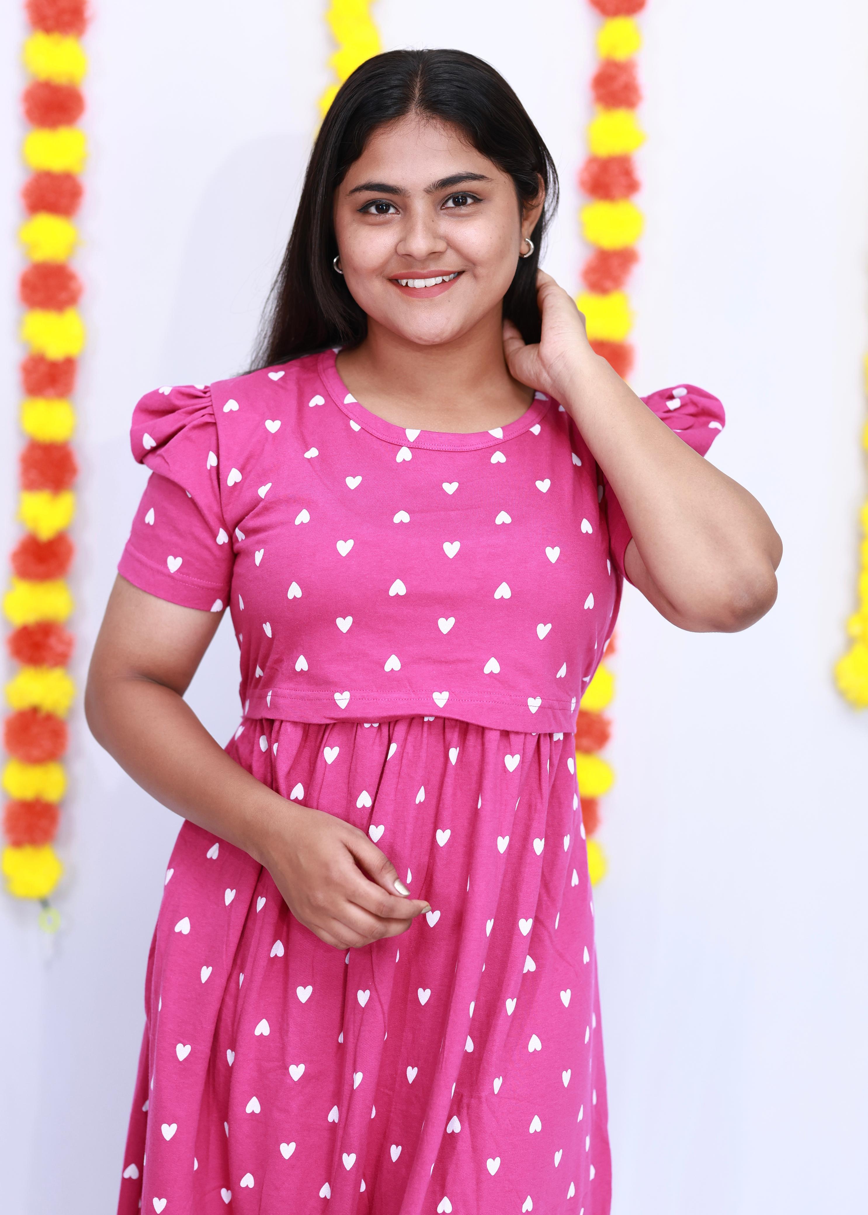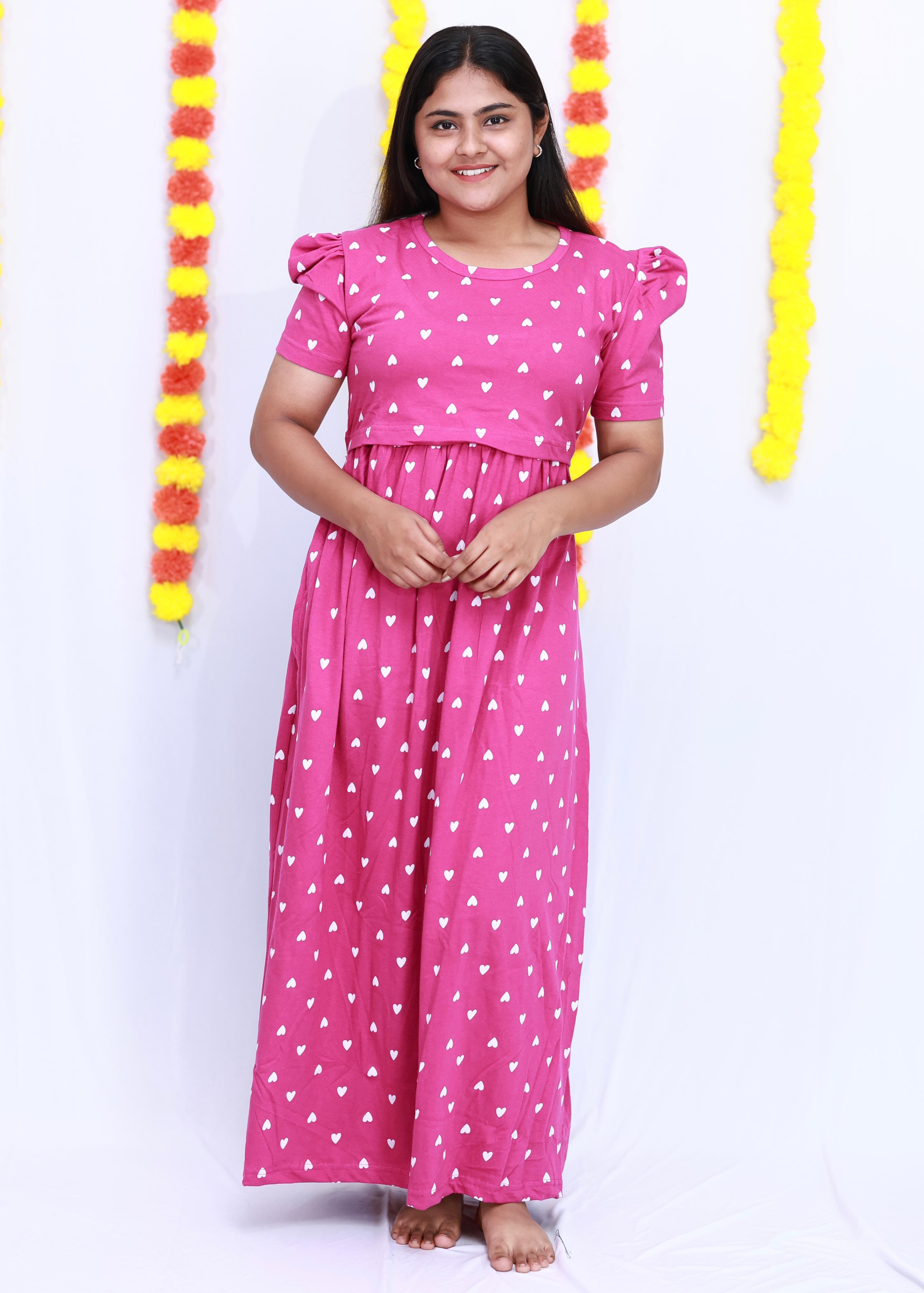 PURPLE HEART | ZIPLESS MATERNITY MAXI-PUFF SLEEVES | FULL LENGTH MAXI