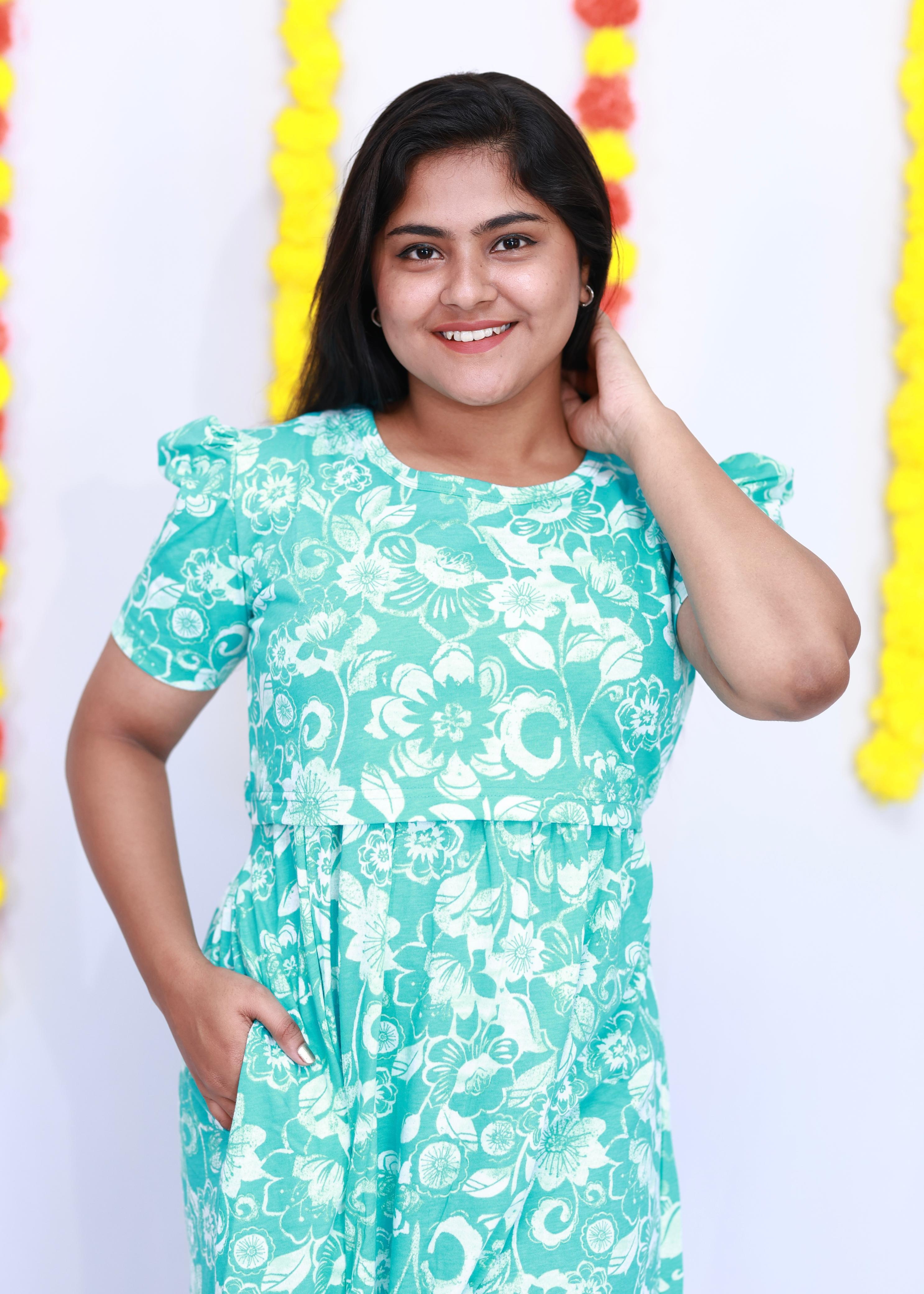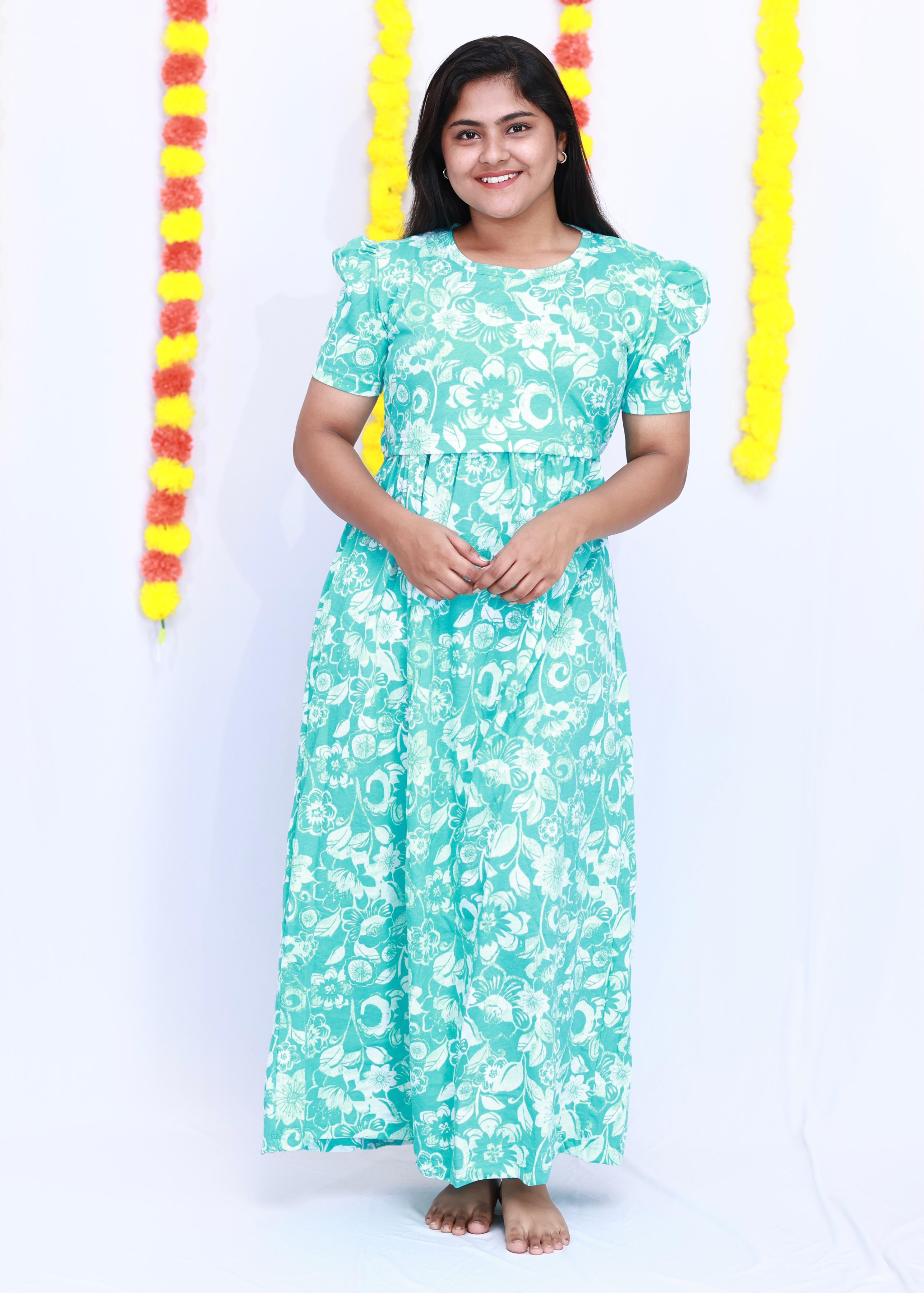 OCEAN FLORAL | ZIPLESS MATERNITY MAXI-PUFF SLEEVES | FULL LENGTH MAXI
