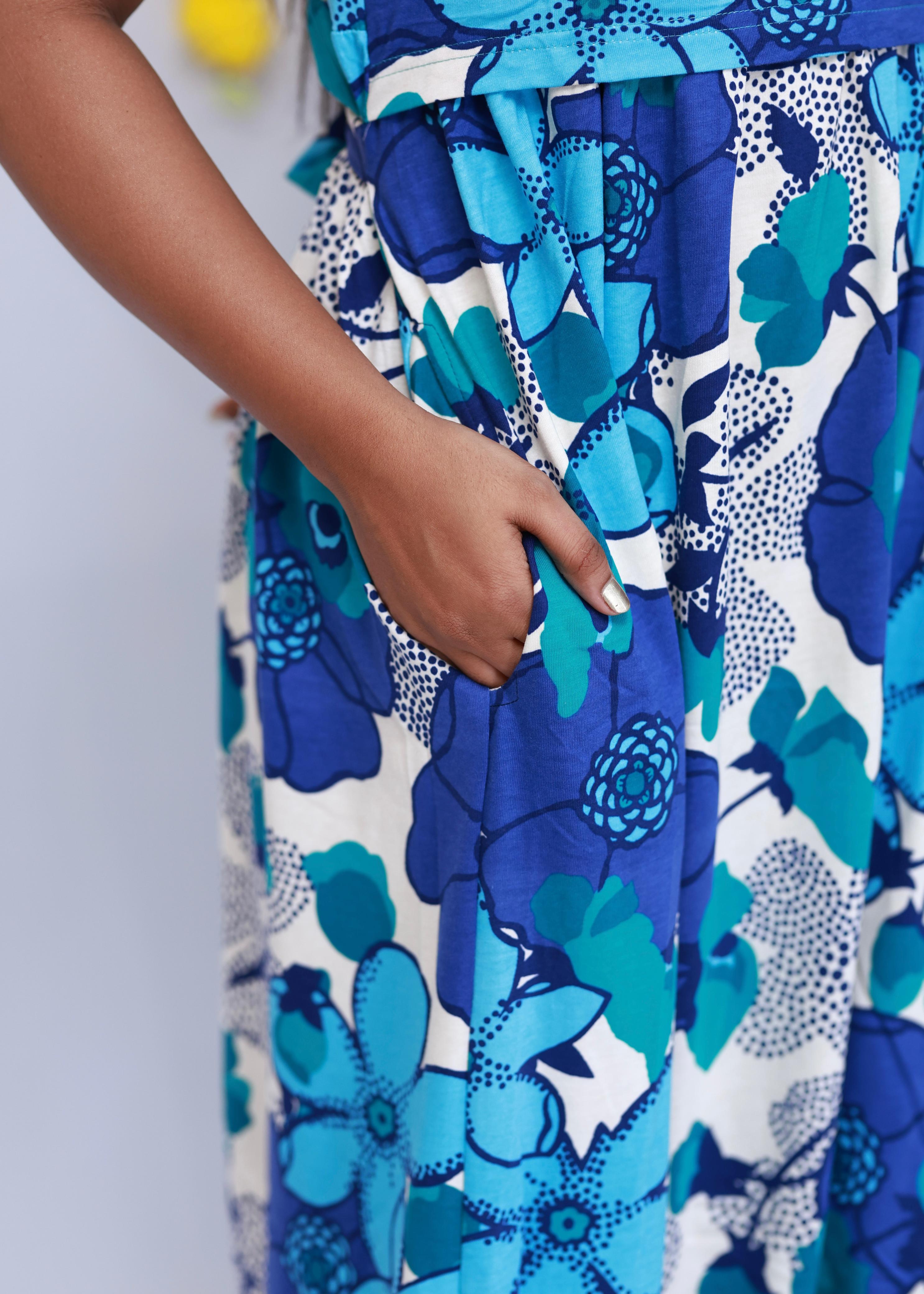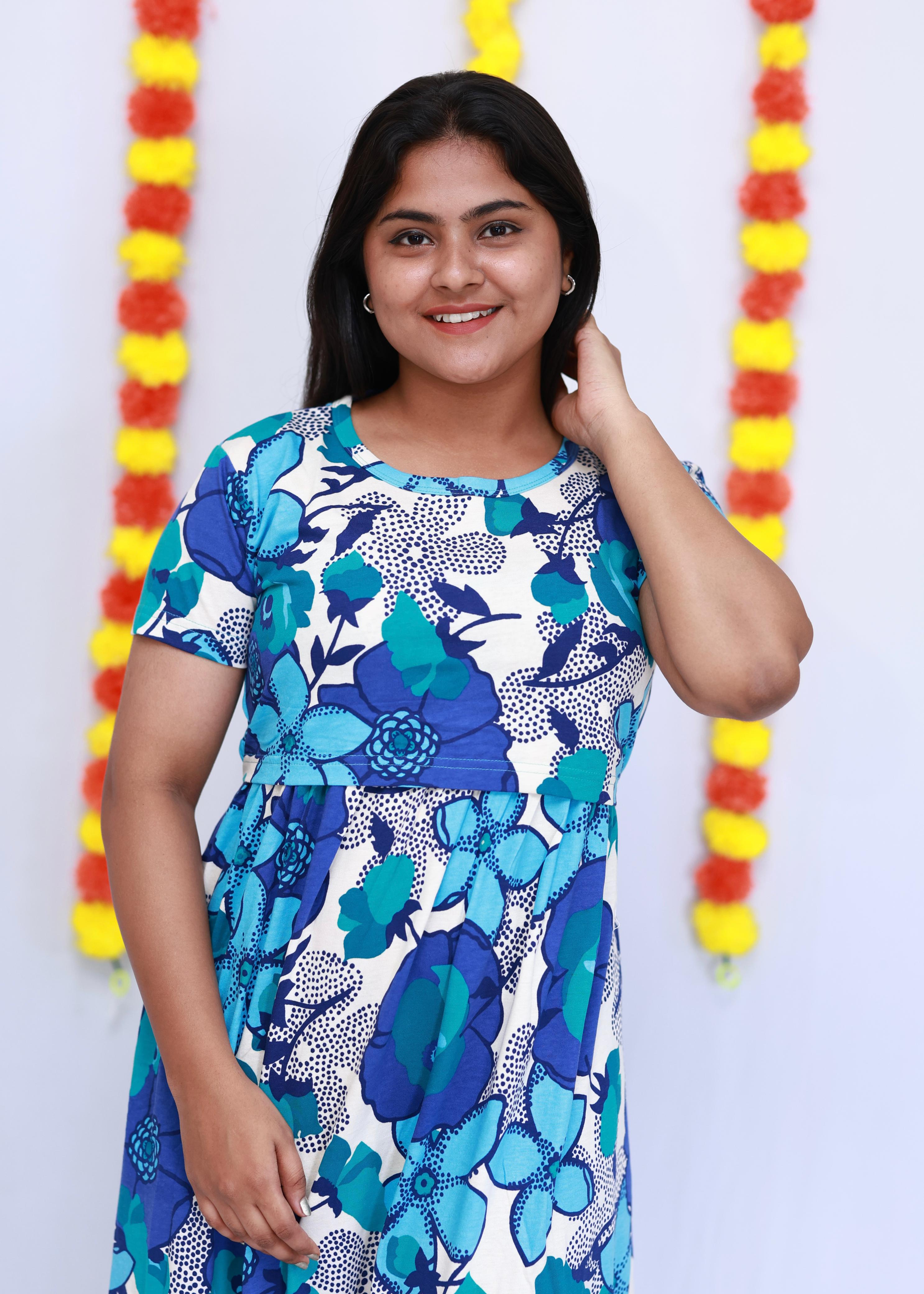 BLUE FLORA | ZIPLESS MATERNITY MAXI-SHORT SLEEVES | FULL LENGTH MAXI