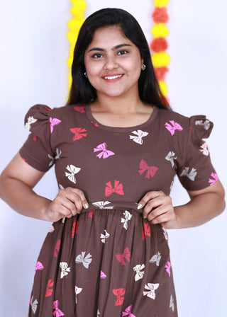 RIBBON | ZIPLESS MATERNITY MAXI-PUFF SLEEVES | FULL LENGTH MAXI
