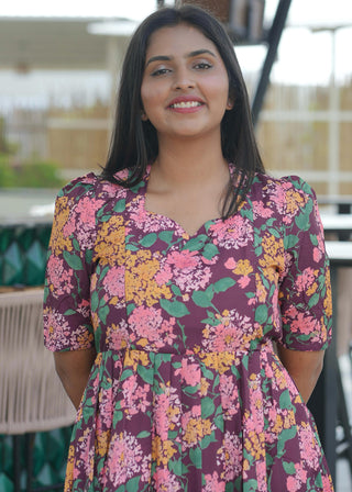 BLUE RED HEART | ZIPLESS MATERNITY MAXI-PUFF SLEEVES | FULL LENGTH MAXI