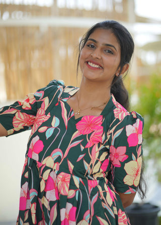 RUFFLE LEAVES | ZIPLESS MATERNITY MAXI-PUFF SLEEVES | FULL LENGTH MAXI