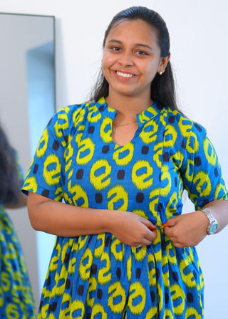 BLUE YELLOW BRINJAL| MATERNITY COTTON MAXI ANKLE LENGTH