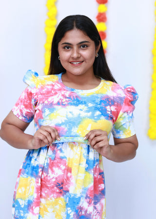MULTI TIE & DYE | ZIPLESS MATERNITY MAXI-PUFF SLEEVES | FULL LENGTH MAXI