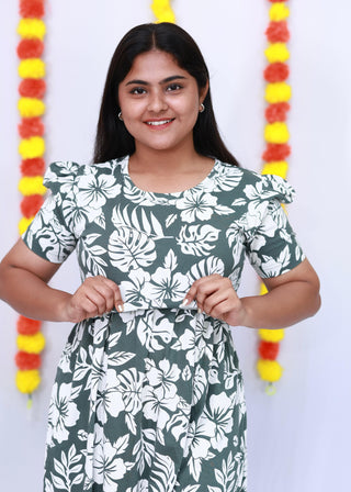 LEAFY RUFFLE | ZIPLESS MATERNITY MAXI-SHORT SLEEVES | FULL LENGTH MAXI