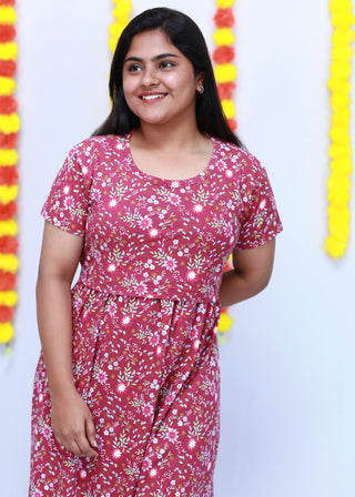 RED BERRY | ZIPLESS MATERNITY MAXI-SHORT SLEEVES | FULL LENGTH MAXI