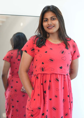 RED HEART SPIDER | ZIPLESS MATERNITY MAXI-SHORT SLEEVES | ANKLE LENGTH MAXI
