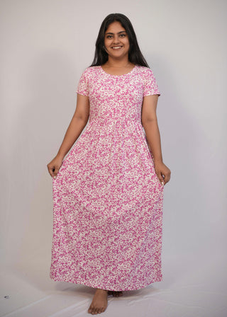 PINK TINY DAISY | NON-FEEDING MAXI – SHORT SLEEVES | ANKLE LENGTH MAXI