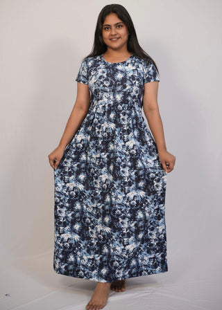 BLUE BLACK TIE & DYE | NON-FEEDING MAXI – SHORT SLEEVES | ANKLE LENGTH MAXI